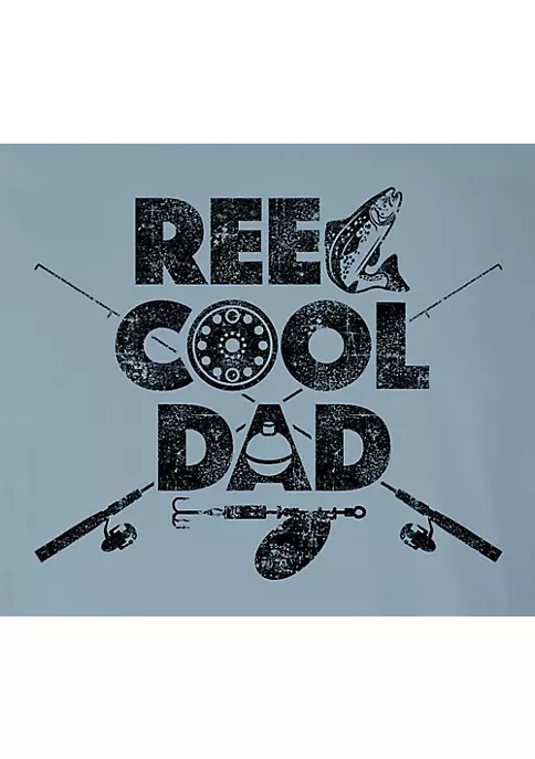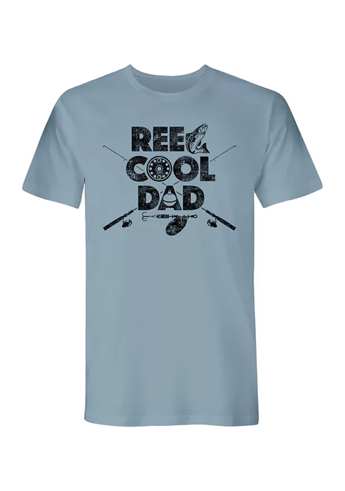 Reel Cool Dad graphic tee shirt. Stonewash denim color. Comfortable cotton, perfect fit.