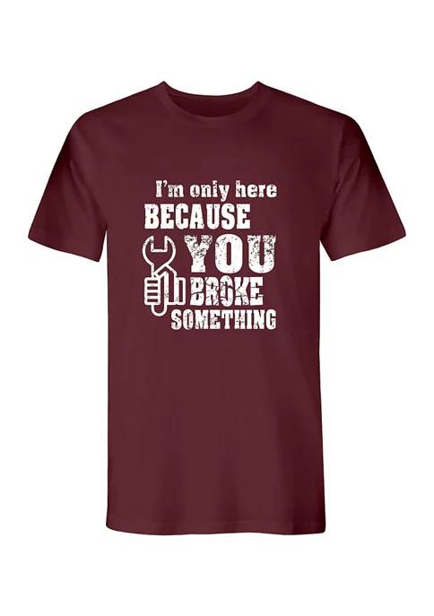 Humorous handyman graphic tee shirt. Classic maroon color. Comfortable cotton, perfect fit.