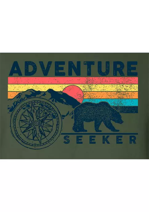 Adventure Seeker earthy graphic print. Soft and comfortable pullover hoodie. Front pocket.