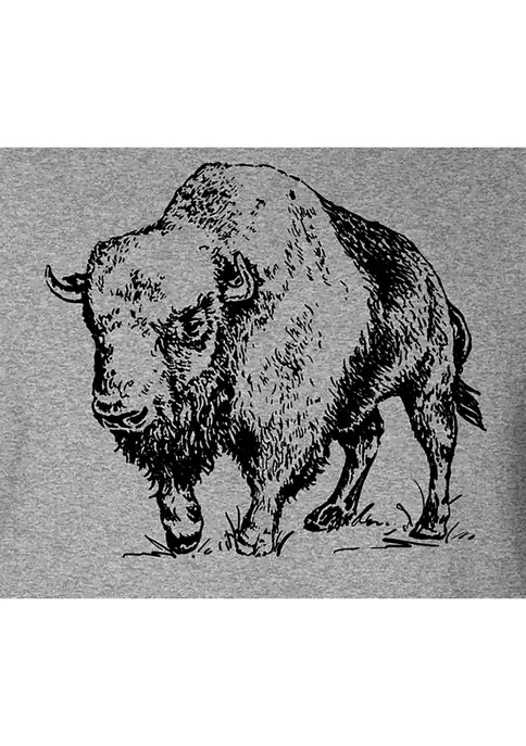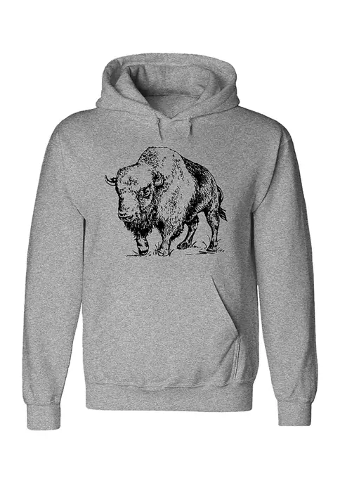 Classic sport gray Bison sketched graphic hooded sweatshirt. Soft and confortable.
