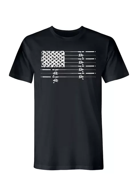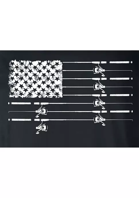 Mixing two favorites, fishing and Americana graphic tee shirt. Comfortable cotton, perfect fit.