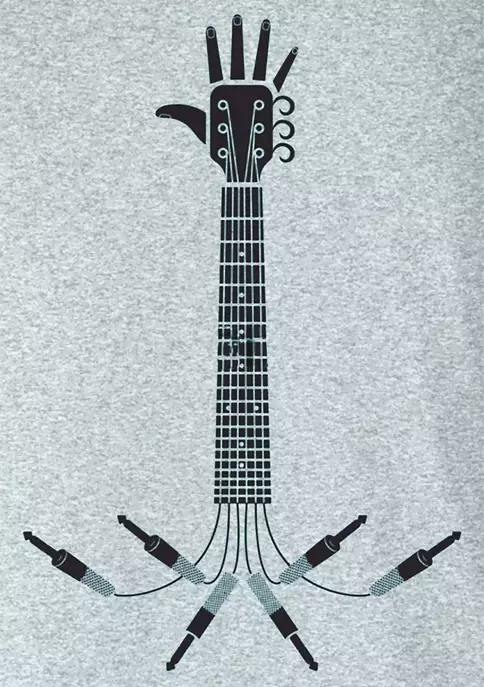 Super cool etched Guitar Hand graphic tee shirt.Make a statement tahiti blue color. Comfortable and cotton. Perfect fit.