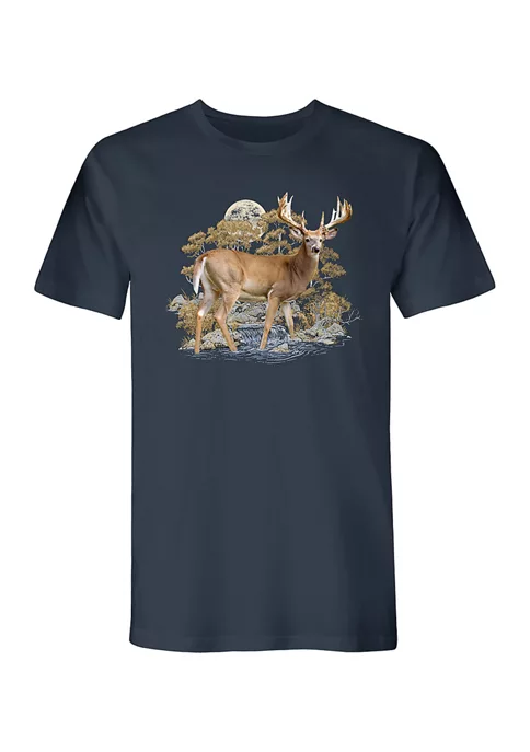 Into the wild moonlight buck graphic tee shirt. Comfortable cotton, perfect fit.
