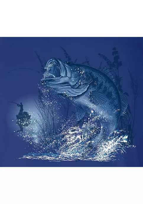 Big bass lights up graphic tee. Comfortable cotton. Perfect fit.