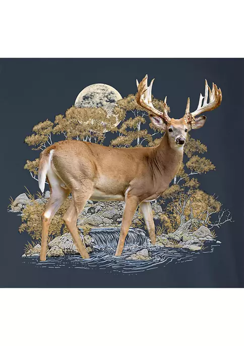 Into the wild moonlight buck graphic tee shirt. Comfortable cotton, perfect fit.