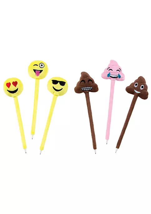 How do you feel today? Happy, cool, silly? Pick your mood and write with these soft plush barrel pens with 6 different emoji plush toppers. It’s fun to use emojis in your texts, but what’s more fun is holding emoji school supplies in your hand!
