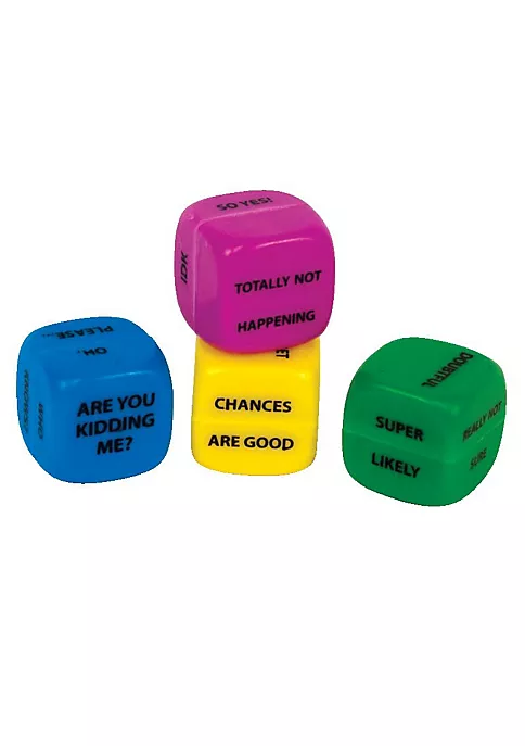 Can’t make a decision to save your life? Forget the magic 8-ball. Ask the Fortune Dice. The Fortune Dice knows all. Just roll these six-sided dice and get a decisive answer to your big questions. Your first question might be, “Should I buy the Fortune Dice?” You’ll be glad to know we asked the Fortune Dice for you. After answering “Ask Again Later” the first couple of times, it finally answered, “Like Yeah, I Think”. So there you have it. A definitive answer from beyond! The 1″ x 1″ x 1″ Fortune Dice comes in a variety of colors and answers. Ask a question, roll the dice and get an answer Assorted colors and fortune messages 1″ cubed Assortments may vary