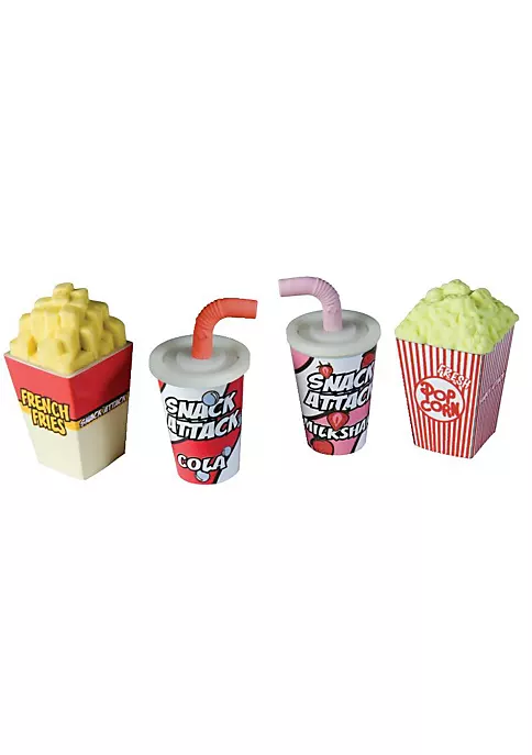 Combo Fast Food Pencil Sharpeners And Erasers with Matching Scents. Assortment: French Fries, Cola, Milkshake, Popcorn