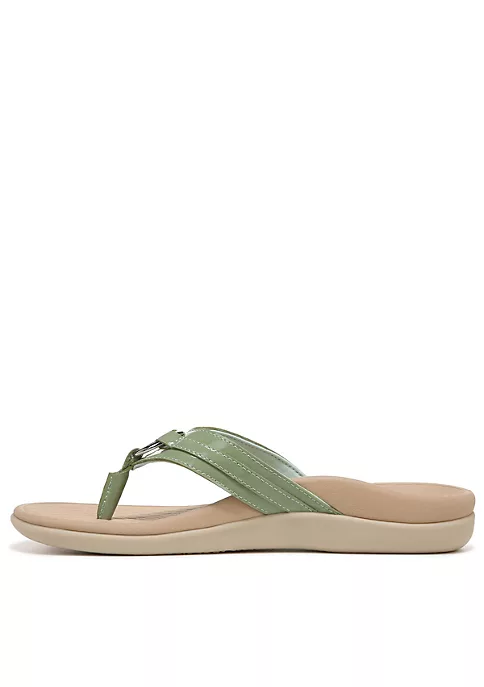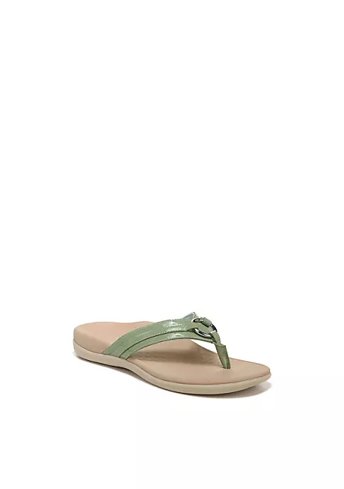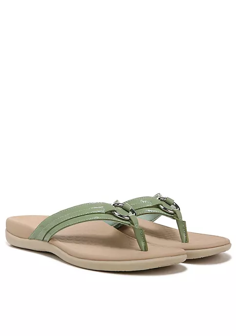 Stroll off into the sunset in these dressed up sandals featuring a striking O-ring embellishment and crinkle patent leather.