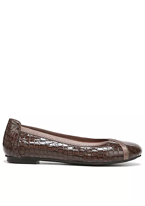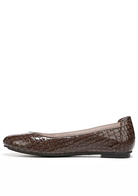 This classic ballet flat gets a luxe upgrade with its comfy elastic top line accented by delicate stitching and crossover details.