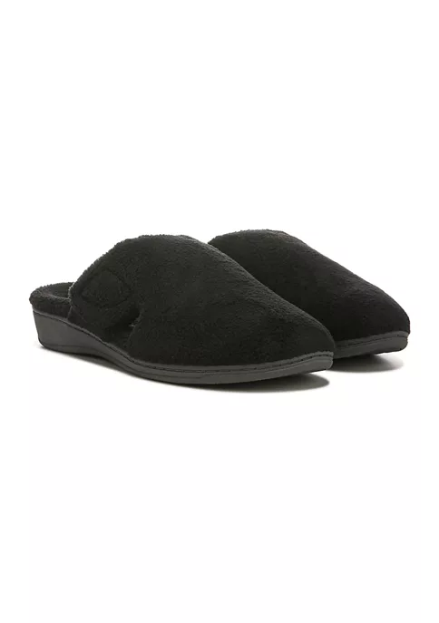Slip into ultrasoft, supportive slippers you’ll never want to take off. Adjust the hook-and-loop closure for a perfect fluffy fit.